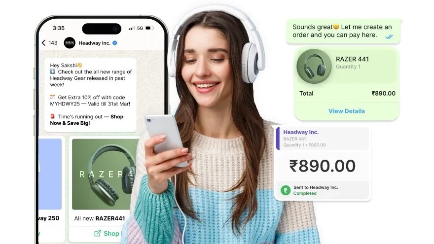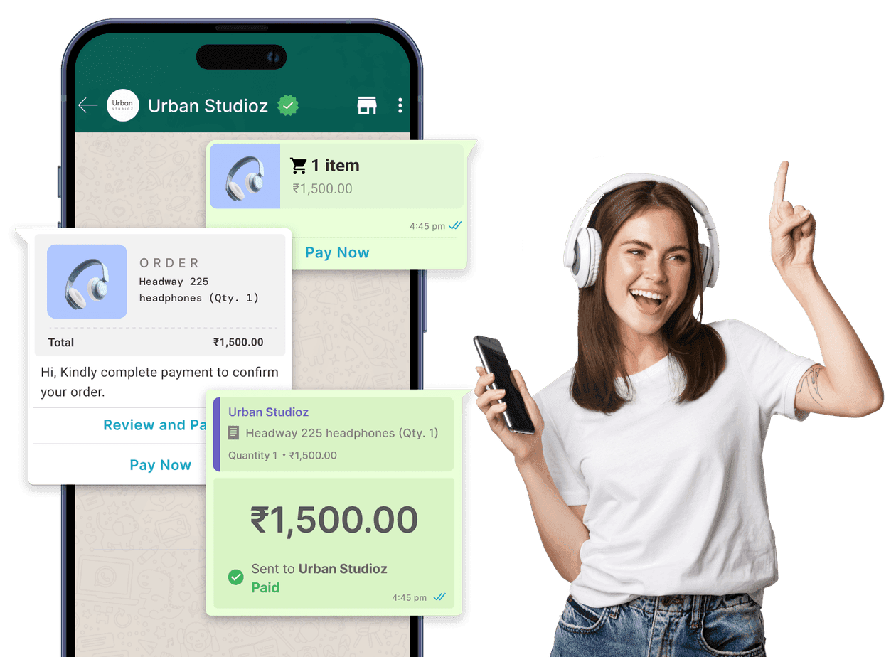 Collect Payments directly within WhatsApp via UPI, Netbanking & Cards & grow your Revenue
